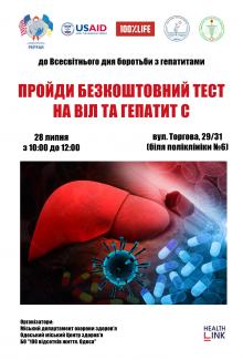 28 липня 2020 року в Одесі відбудеться акція до Всесвітнього дня боротьби з гепатитами. Одесити зможуть безкоштовно пройти швидке тестування (15 хвилин) на ВІЛ та вірусний гепатит С....