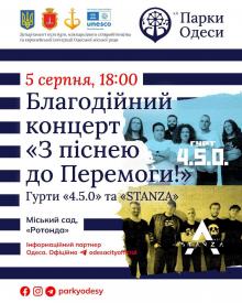 КП «Парки Одеси» запрошує на благодійний концерт, присвячений Дню Повітряних Сил Збройних Сил України. Захід відбудеться за участі музичних гуртів «STANZA» та «4.5.0.». «STANZA» —...