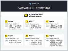 Оновлені рафіки відключень по групах для Одещини – на фото.