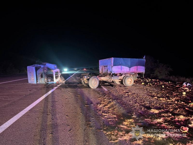 Попередньо правоохоронці встановили, що водій вантажного самоскида, виїжджаючи з узбіччя на проїжджу частину, не надав перевагу в русі легковому автомобілю, який рухався в напрямку Одеси. Внаслідок цього машини зіткнулися.