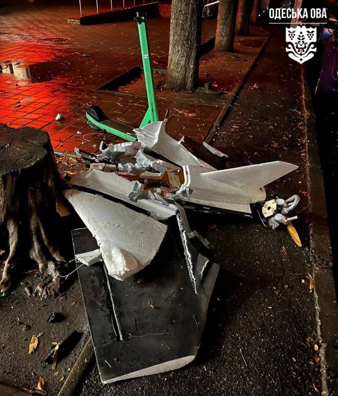 Щойно під час повітряної тривоги сили ППО знищили ворожі цілі над Одещиною. Уламки одного з дронів впали на тротуар у Приморському районі Одеси.