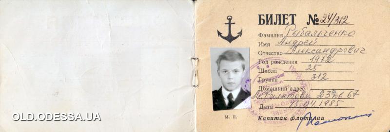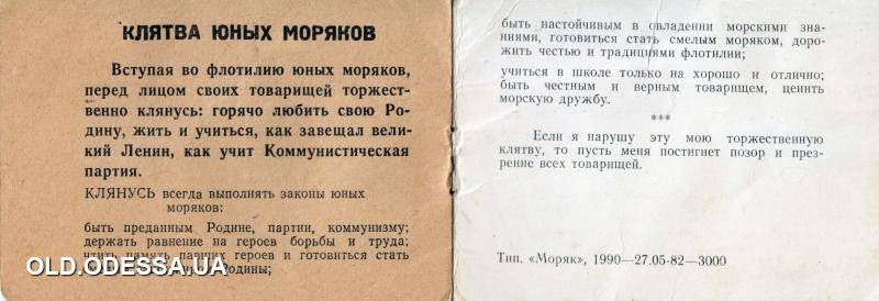 Страницы 2 и 3 билета флотилии юных моряков. Одесса. 1985 г.