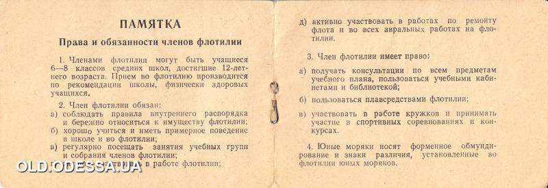 Страницы 3 и 4 билета флотилии юных моряков. Одесса. 1985 г.