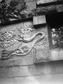 Барельеф на фасаде бывшего особняка Брайкевича. Фото А. Дроздовского. 1970-е гг.