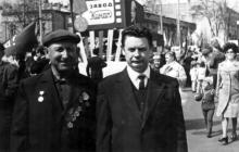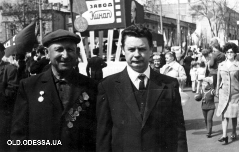 Георгий Иванович Пенко на Первомайской демонстрации с заводом. 1972 г.