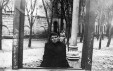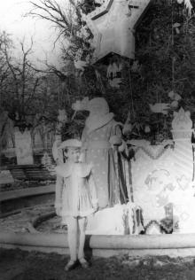 У скульптуры львицы в городском саду. Одесса. 1950-е гг.