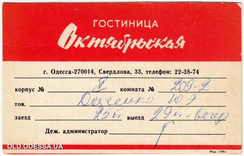 Карточка гостя гостиницы «Октябрьская»