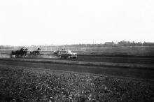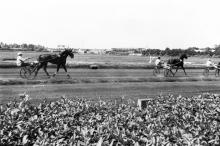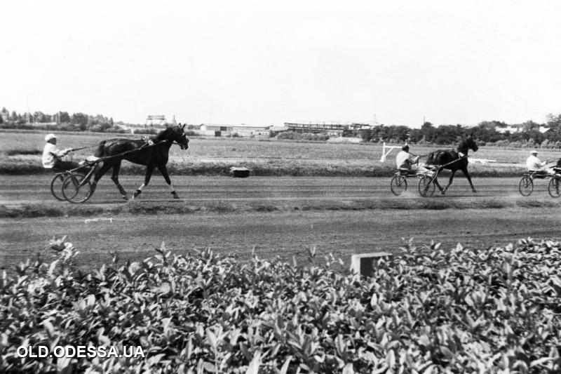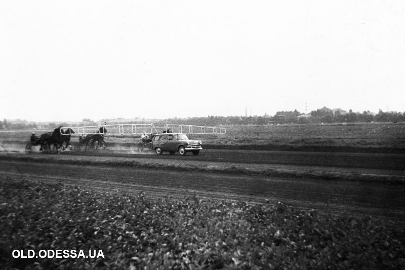 Одесский ипподром, момент заезда.Фото М. Рыжака в газете «Большевистское знамя». 05 августа 1949 г.