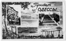 «Привет из Одессы». Многовидовая фотооткрытка. По подписи на обороте 1958 г.
