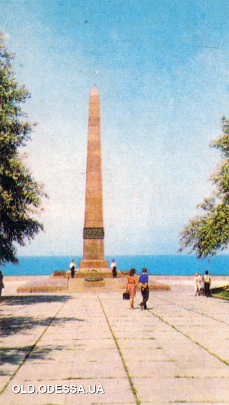 Памятник-обелиск Неизвестному Матросу на аллее Славы. Открытка из комплекта «Одесса», 1981 г.