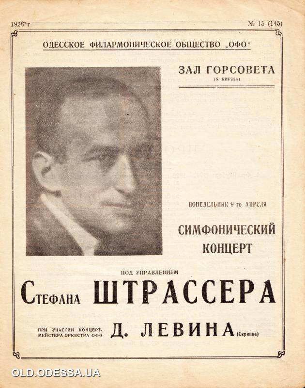 Обложка программы концерта Стефана Штрассера. Одесское филармоническое общество. 1928 г.
