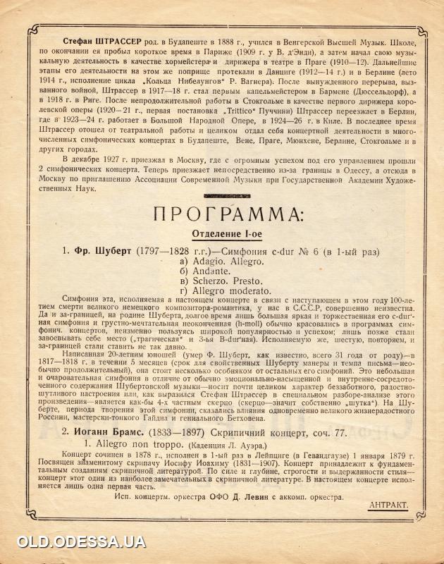 2-я страница программы концерта Стефана Штрассера. Одесское филармоническое общество. 1928 г.