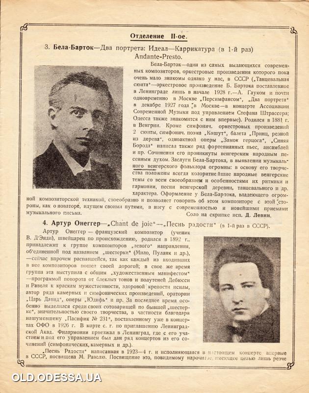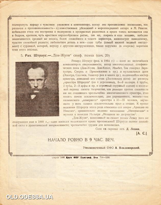 3-я страница программы концерта Стефана Штрассера. Одесское филармоническое общество. 1928 г.