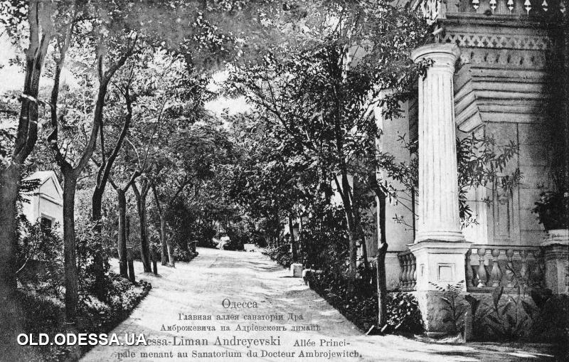 Одесса. Главная аллея санатория д-ра Амброжевича на Андреевском лимане. Открытое письмо.
