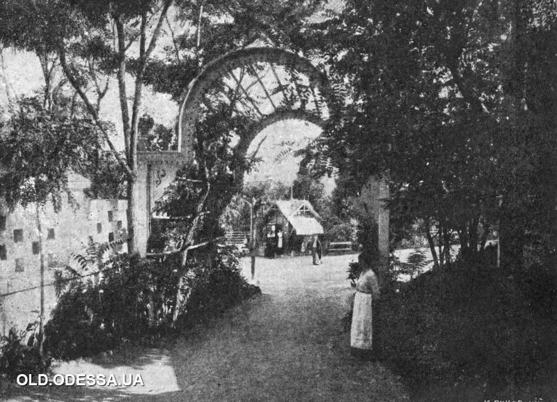 Одесса. Грот в главной аллее санатории д-ра Амброжевича на Андреевском лимане. Открытое письмо. По штемпелю 1910 г.