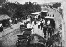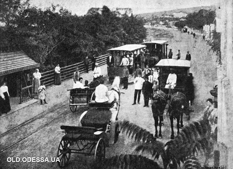 Одесса. Куяльницкий (Андреевский) лиман. Экипажи лечебницы и конно-железные вагоны у подъезда лечебницы д-ра Амброжевича. Открытое письмо.