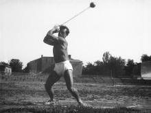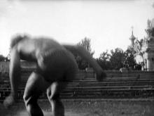 Тренировка на стадионе РКГ (профсоюза работников кооперации и госторговли) в Одессе. Кадр из фильма «Человек с киноаппаратом». Снимался в 1928 г.
