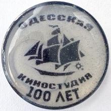 Значок, выпущенный к 80-летию Одесской киностудии. 1999 г.
