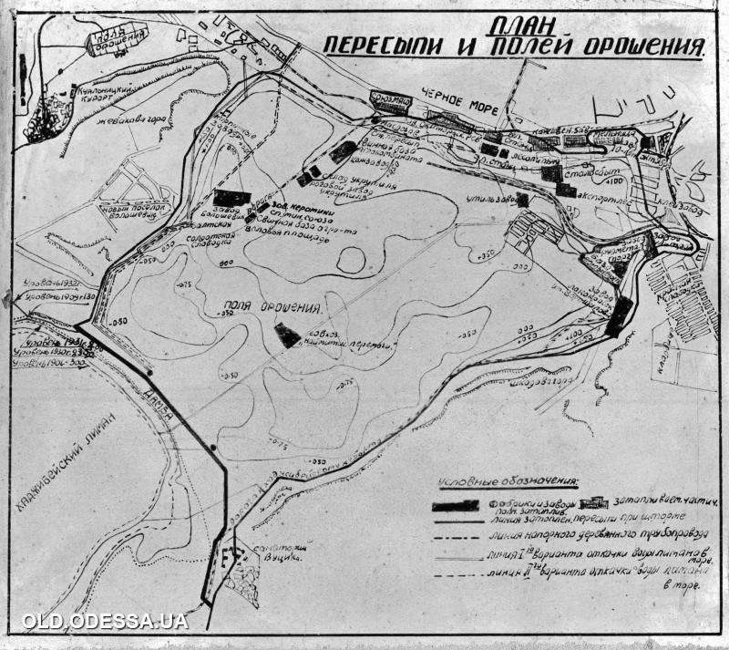 План Пересыпи и полей орошения. Фото в альбоме ««Восстановление дамбы Хаджибея». 1942 г.