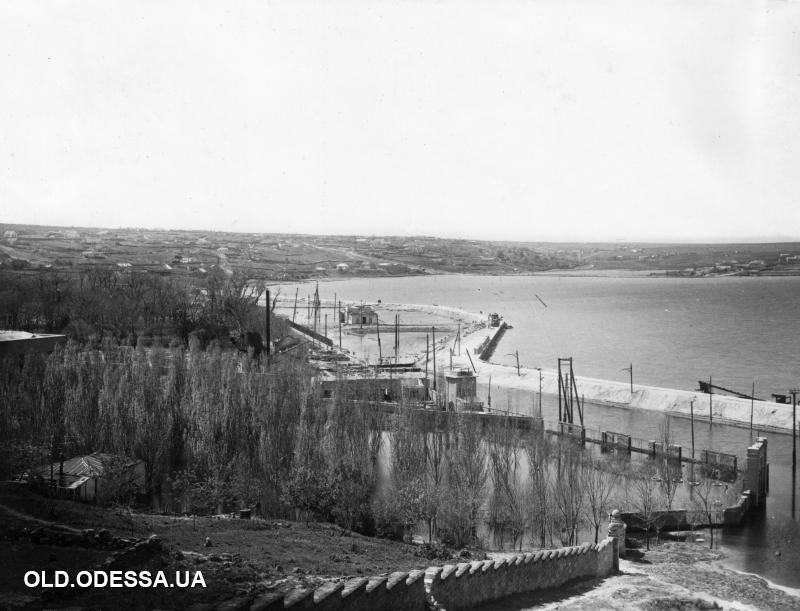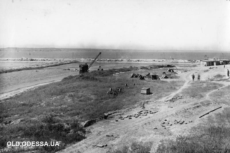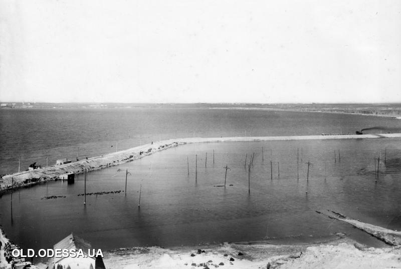 Устье канала «Лиман–Куяльник–Море». Сентябрь 1942 г. Фото в альбоме ««Восстановление дамбы Хаджибея». 1942 г.