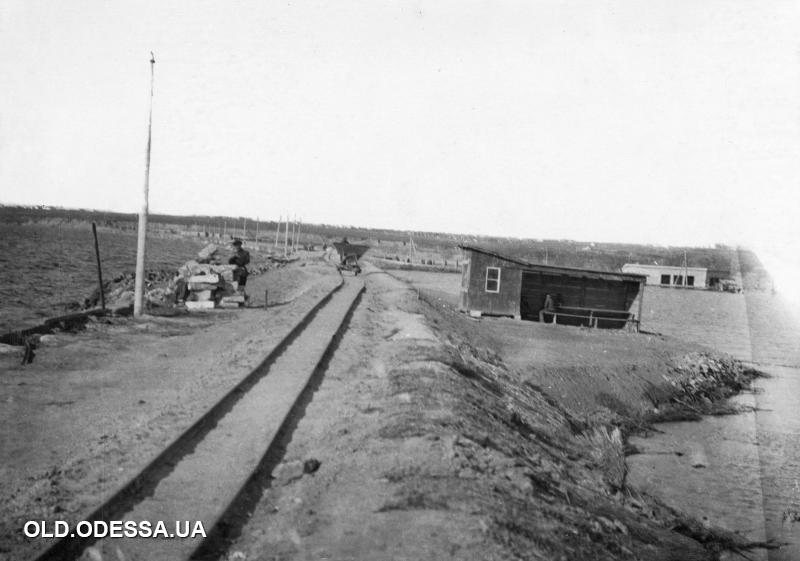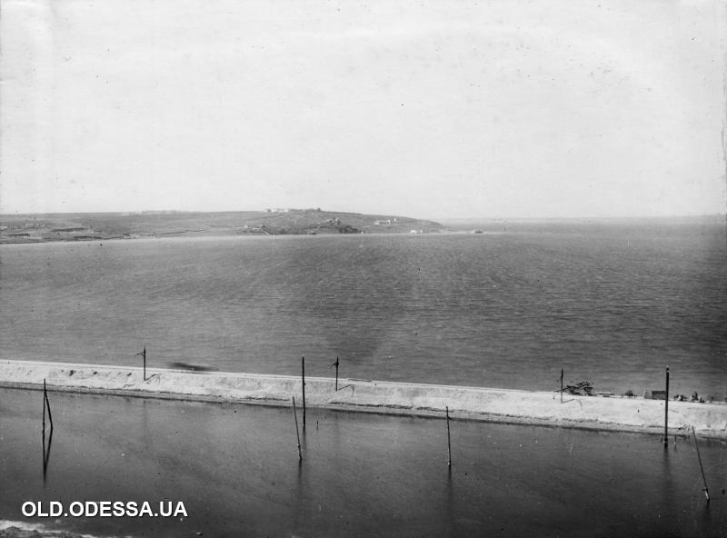 Общий вид Хаджибеевской дамбы. Май 1942 г. Панорама, фото 2 из 4. Фото в альбоме ««Восстановление дамбы Хаджибея». 1942 г.