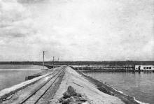 Общий вид Хаджибеевской дамбы. Май 1942 г. Панорама, фото 1 из 4. Фото в альбоме ««Восстановление дамбы Хаджибея». 1942 г.