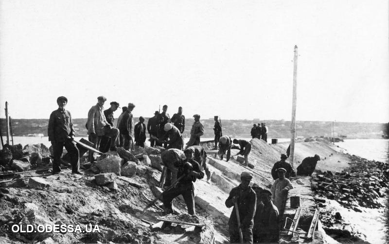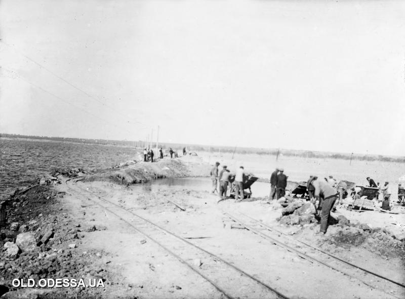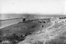 Хаджибеевская дамба в месте выхода канала. Сентябрь 1942 г. Фото в альбоме ««Восстановление дамбы Хаджибея». 1942 г.