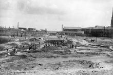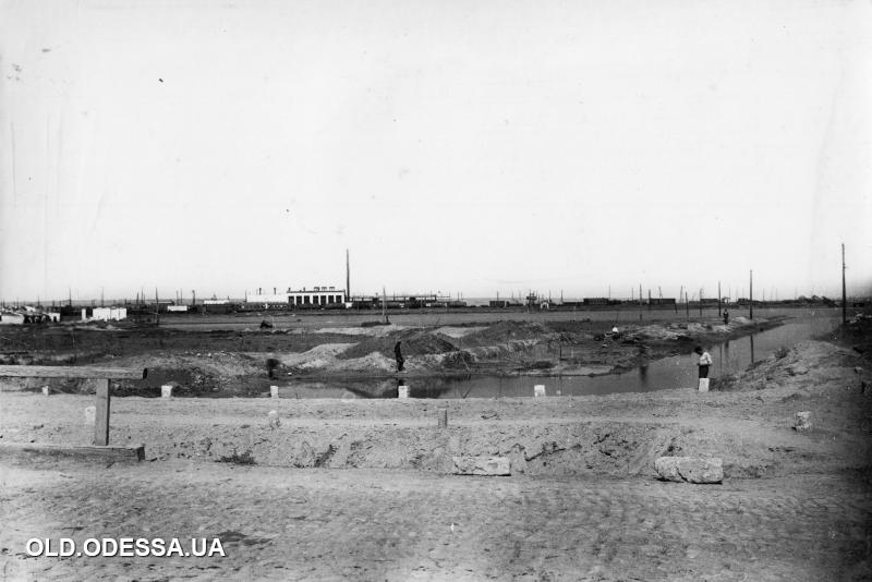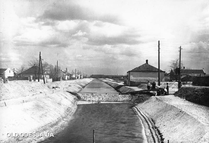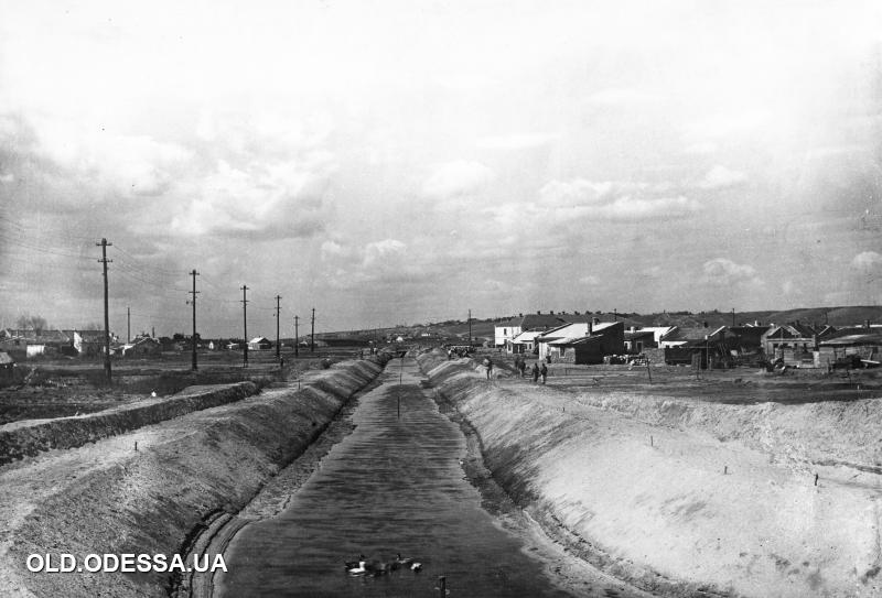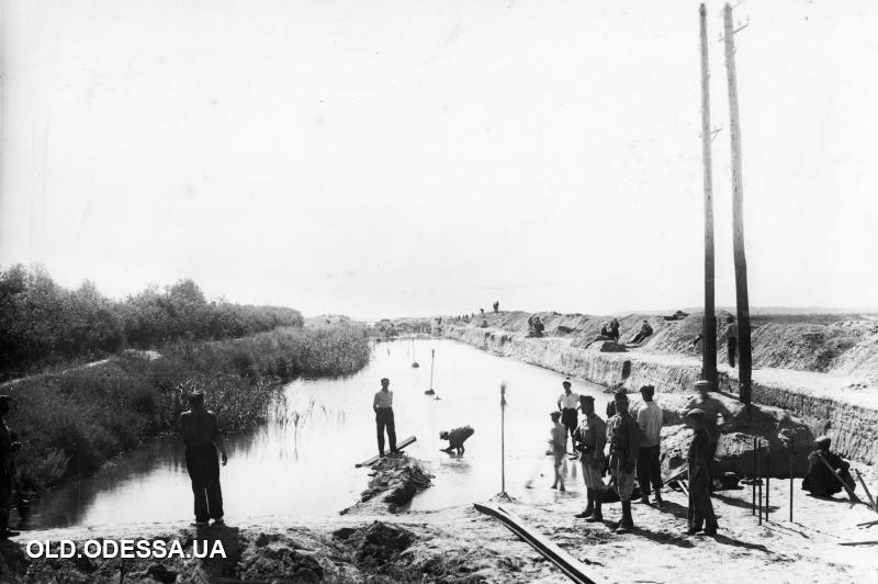 Постройка канала № 1 и моста на ул. Московской. Август 1942 г. Фото в альбоме ««Восстановление дамбы Хаджибея». 1942 г.