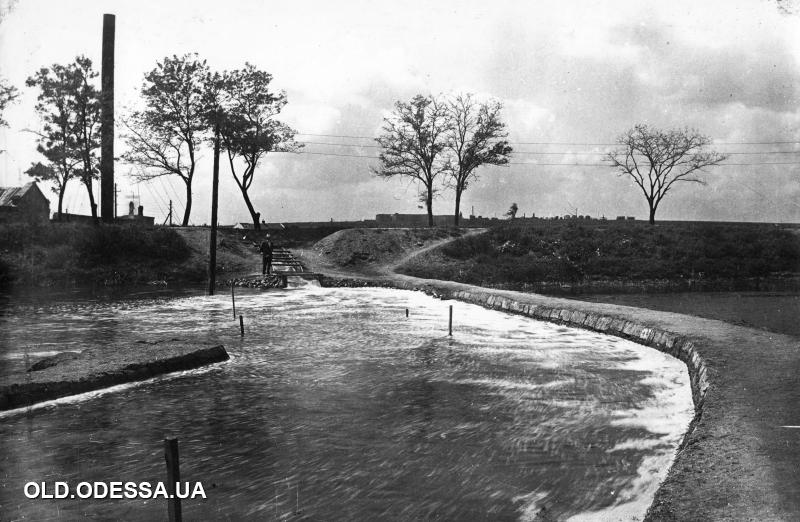 Насосная станция № 1. Поступление воды в канал № 1 на Пересыпи. Сентябрь 1942 г. Фото в альбоме ««Восстановление дамбы Хаджибея». 1942 г.