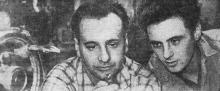 Рабочие инструментально-механического цеха завода им. Иванова Виктор Штемберг (слева) и Эдуард Шахмейстер. Фото А. Князева. «Знамя коммунизма» 09 января 1963 г.