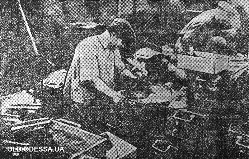 За формовкой на заводе Октябрьской революции. Фото в одесской газете «Известия», 22 мая 1929 г.